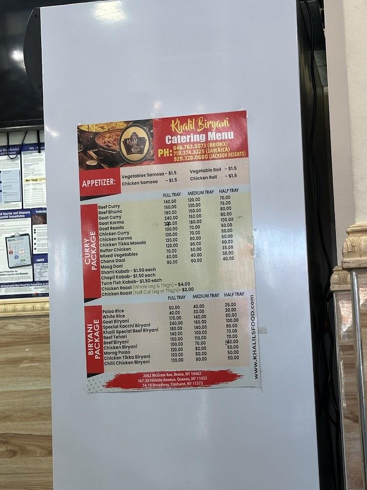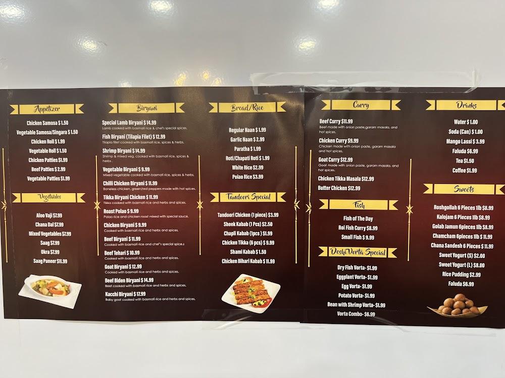 Khalil's menu celebrates Bengali culinary traditions. The biryani selection is the highlight, including the famous kacchi and chicken biryani. Each dish is crafted with quality ingredients, ensuring rich, authentic tastes. The restaurant also offers a variety of appetizers, like chicken samosas and vegetable rolls, perfect for sharing or enjoying alone. Moving to curries, options like chicken tikka masala and beef curry ignite flavors that evoke home-cooked meals. The dessert selection delights with traditional sweets like gurer shondesh, a local favorite to end your meal on a sweet note. The inviting beverage menu includes refreshing drinks like mango lassi, complementing the spicy dishes perfectly. With an average price around $8.82, the menu caters to all appetites, providing excellent value.